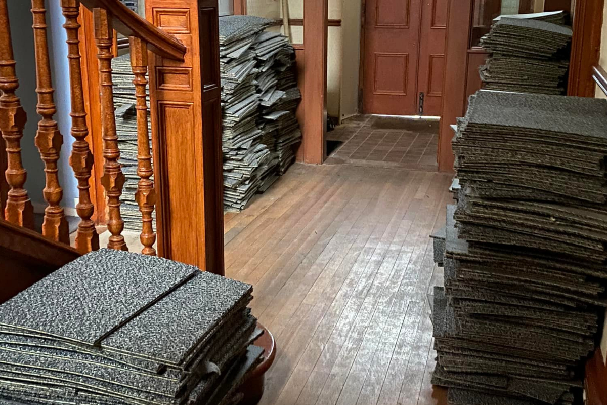 Site owners and project supporters, Advance Construction Scotland Ltd donated a van of tiles, so we can make your welcome cosy underfoot.